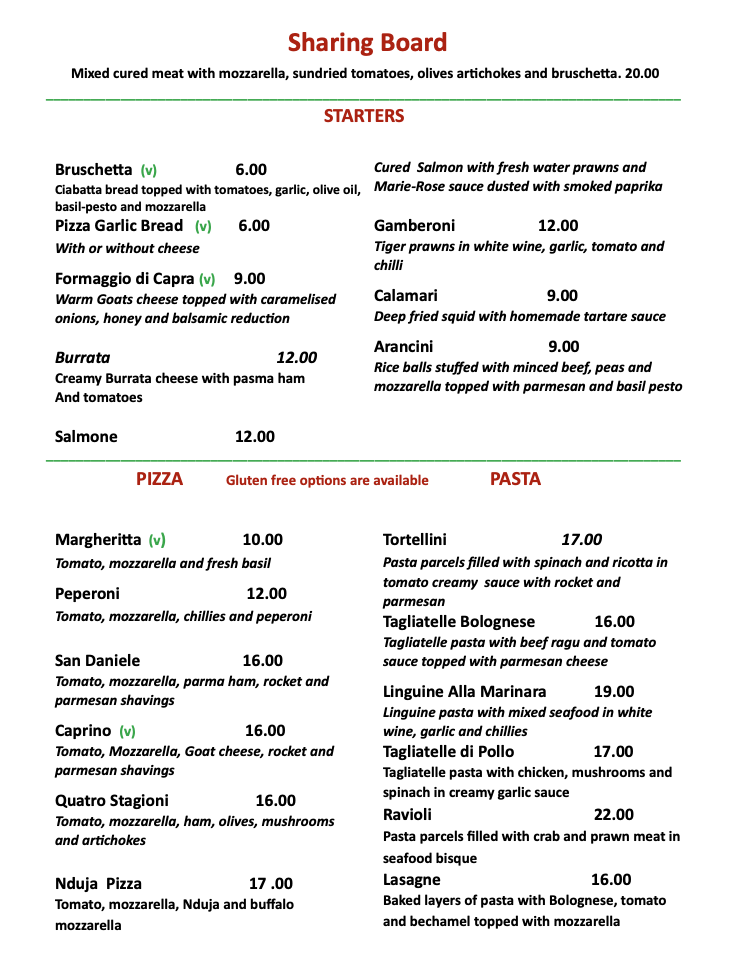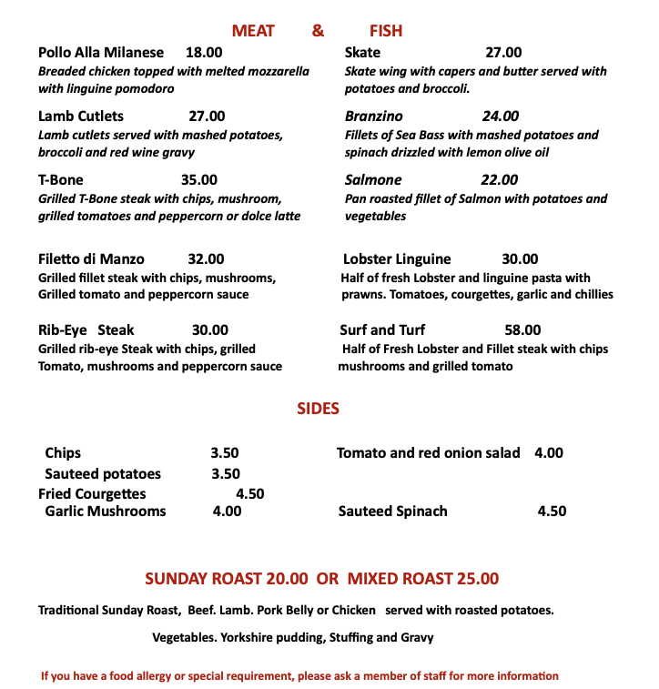 Our menu offers modern dishes, inspired by historic Italian gastronomy. The A la Carte menu is available throughout lunch and dinner with an additional set lunch menu offered Monday to Friday excluding Public holidays.